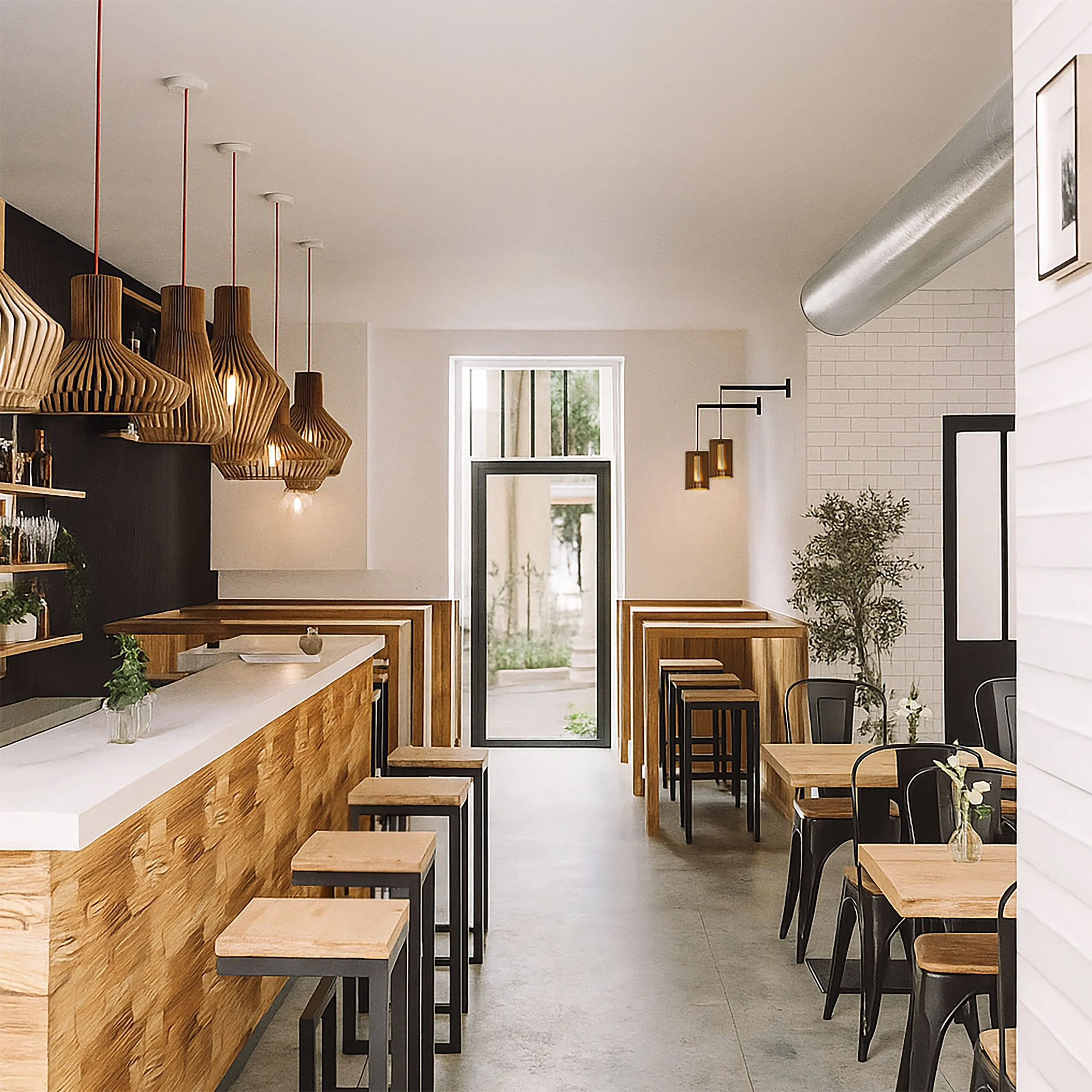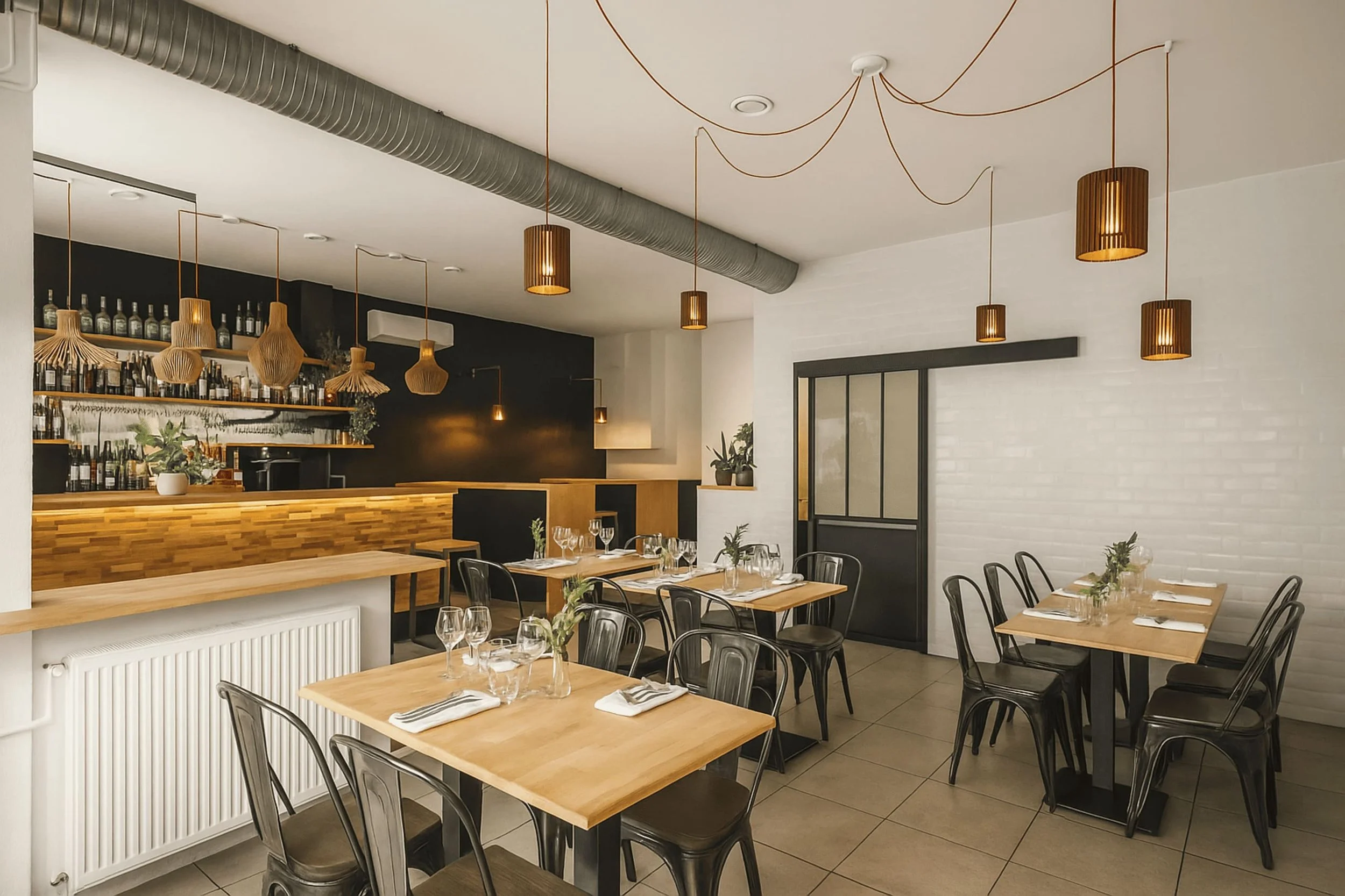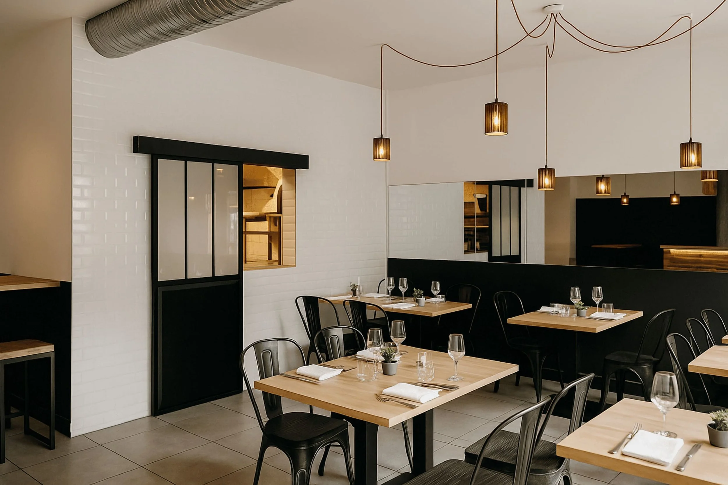 Rénovation et identité visuelle d’une salle de restaurant (hors cuisine).